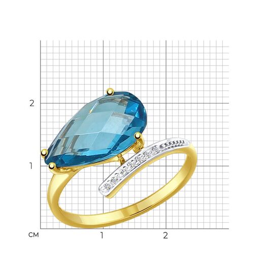 This ring is crafted from Gold 585° for a balance of durability and refined shine. The design is accented with Synthetic sitall, Cubic zirconia, adding character and a subtle play of light. Versatile and easy to style, it works equally well for everyday looks and more formal occasions. It also makes a thoughtful gift for someone who appreciates timeless, understated jewelry.
